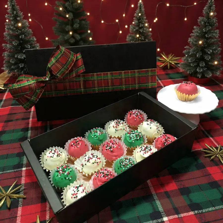 Can't decide what to get? Order our Gift Set for a good variety! Each box is packed with a red velvet cake, mini log cake, mini fruitcake, gingerbread boy & girl macarons, chocolate cake pops, snowflake cookies, salted caramel & nut brownie and fruit mince cookies!