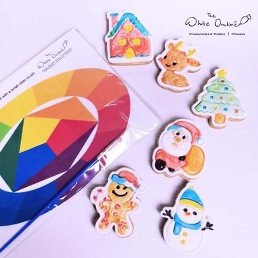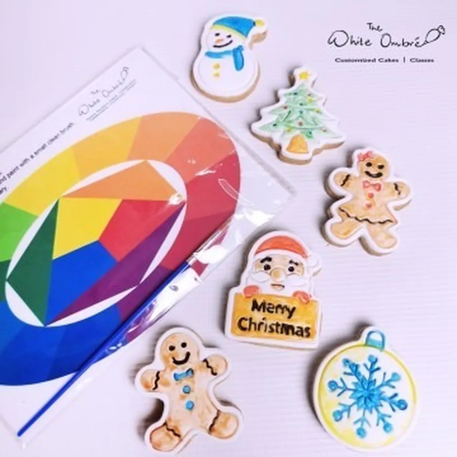 Simply wet the paint brush with a little water and dab it onto the specially provided paint palette printed with edible food coloring, then paint on the cookie. Rinse the brush before switching to another color. Allow to air dry before packing.