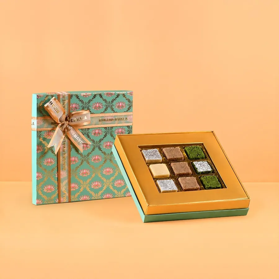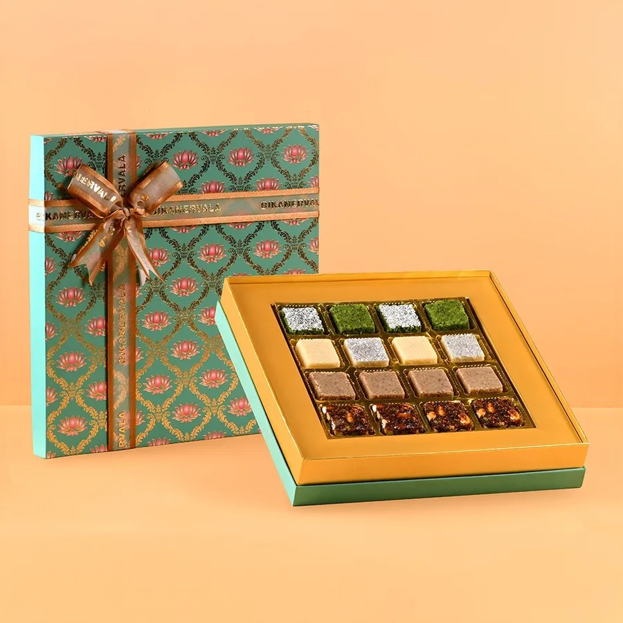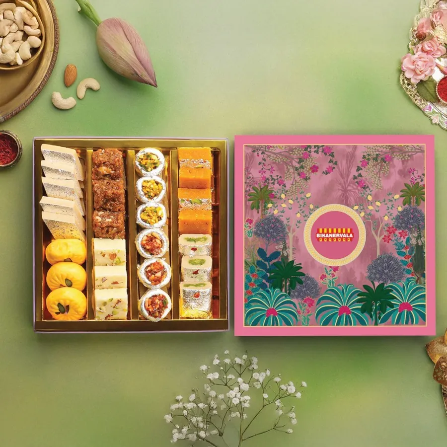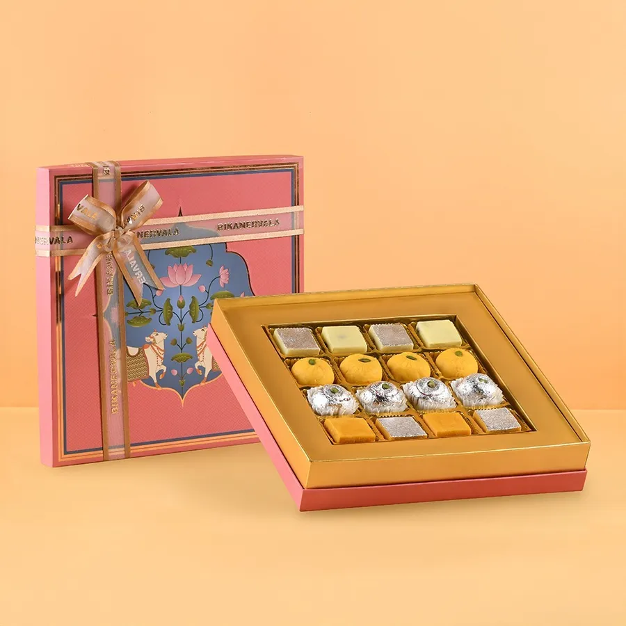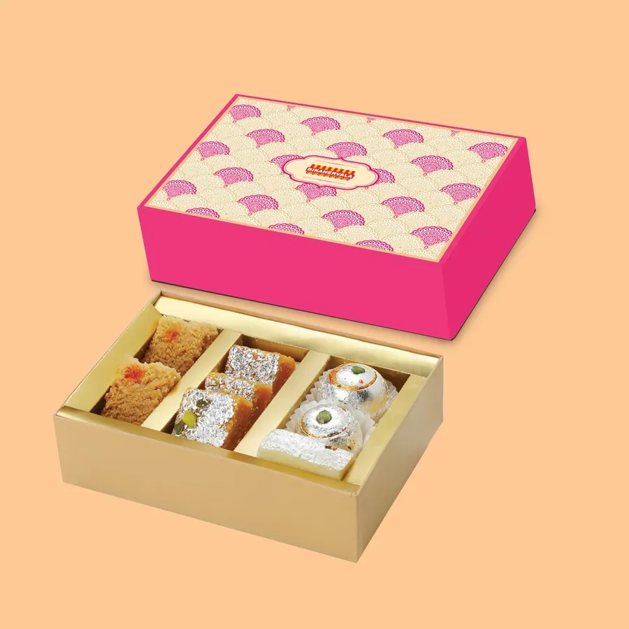 Included : Kaju Kesar Burfi, Kaju Lemon, Khoya Kesar Peda, Khoua Pista Burfi