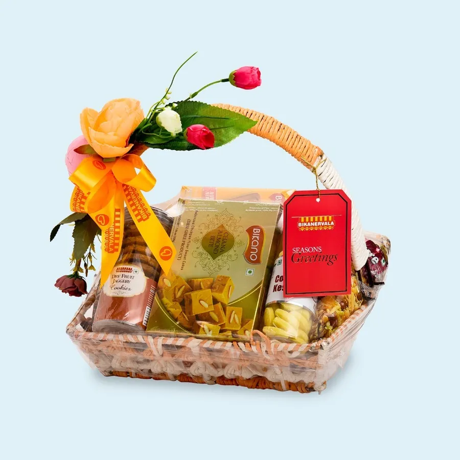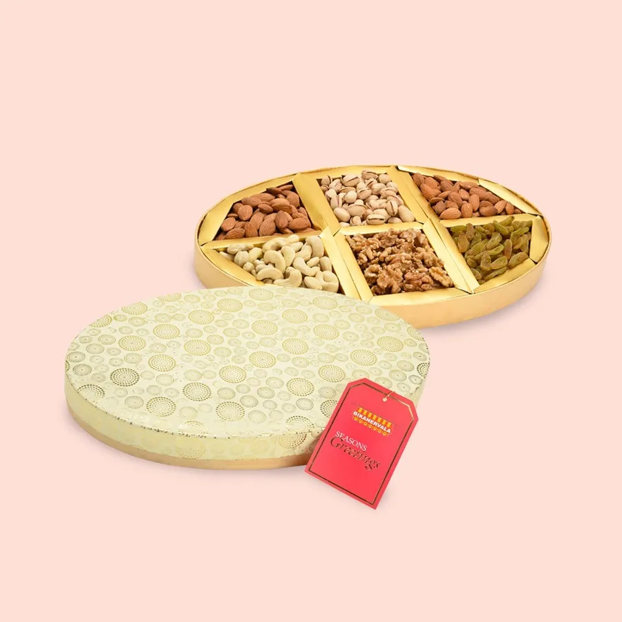 Included: Kaju Chakkar, Laddu Pista, Badam Laddu, Kaju Basket, Anjeer Chakkar, Khajoor Chikki