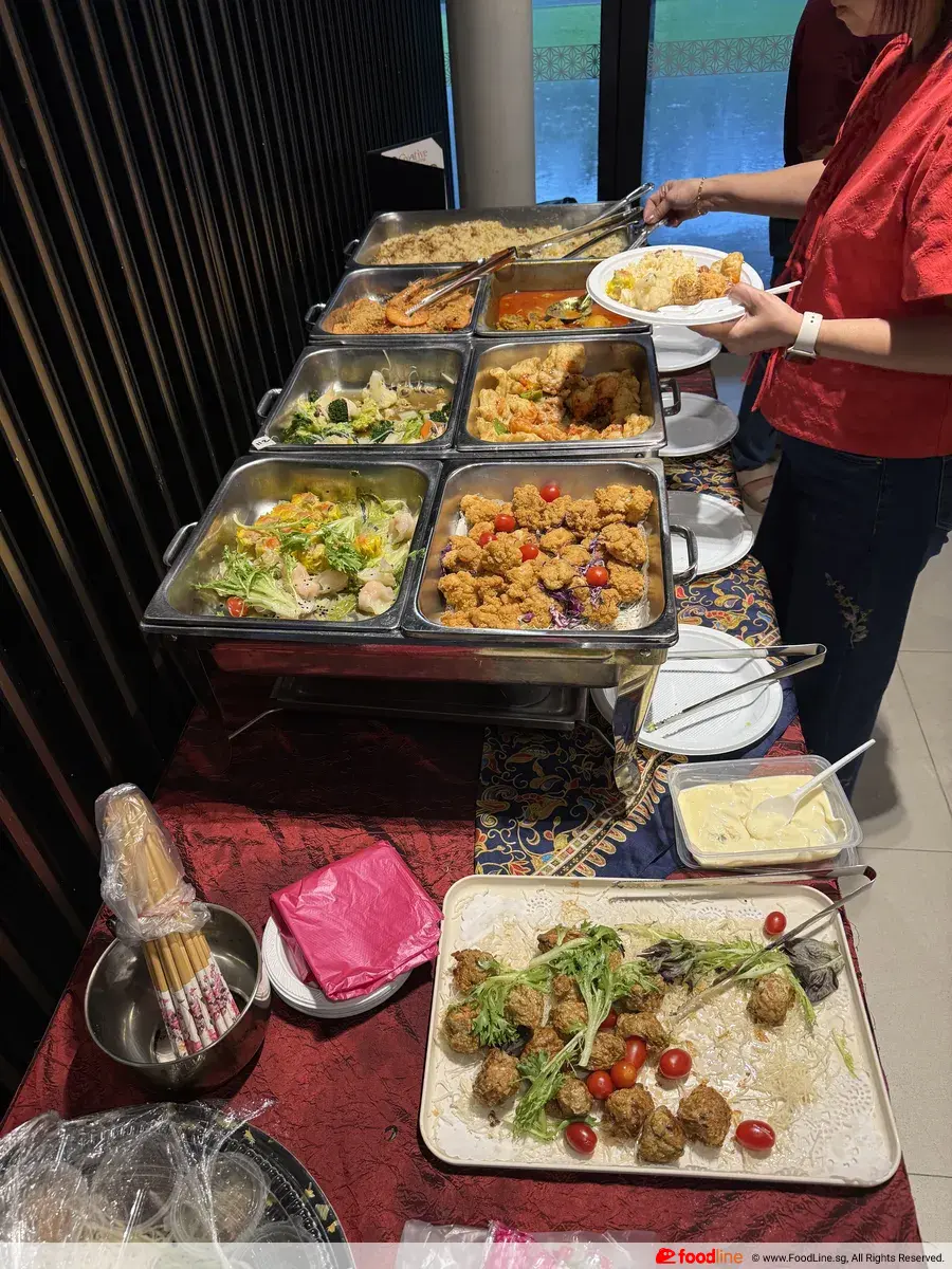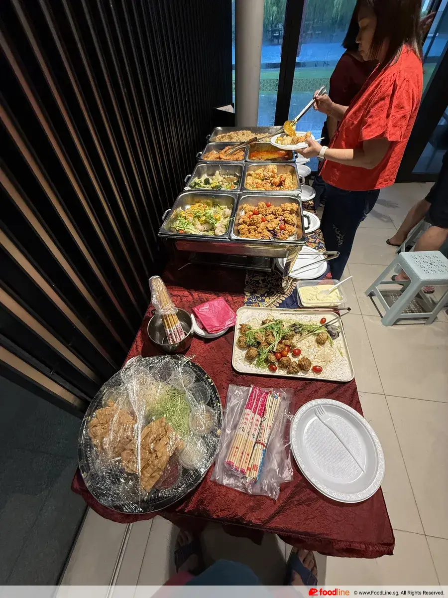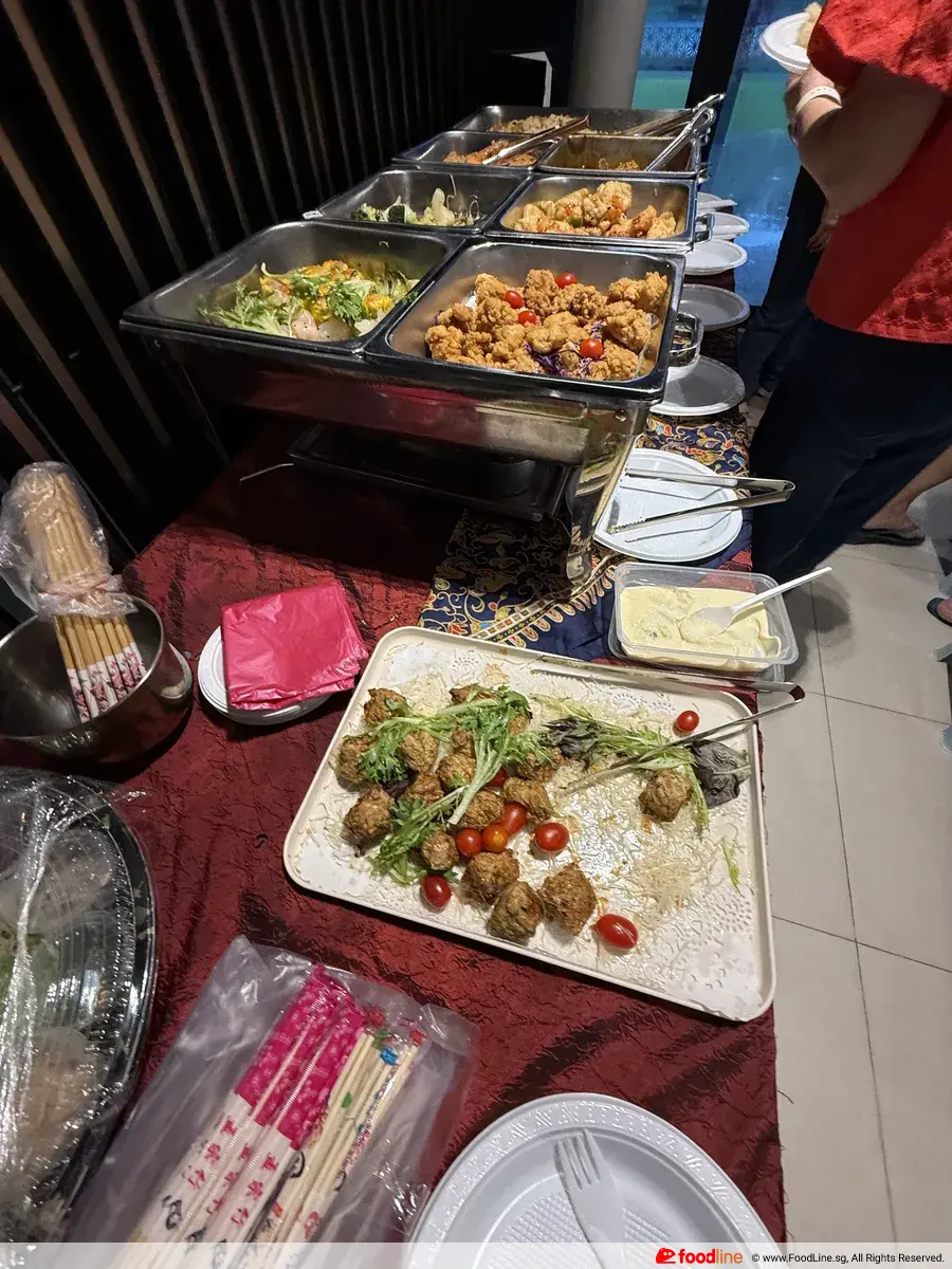 Delivery man very helpful and quick setup. Food was almost finished Curry chicken is good . Rice was barely sufficient as it goes well with the chicken. Rest of the dishes was 70-80% gone. Repeated orders