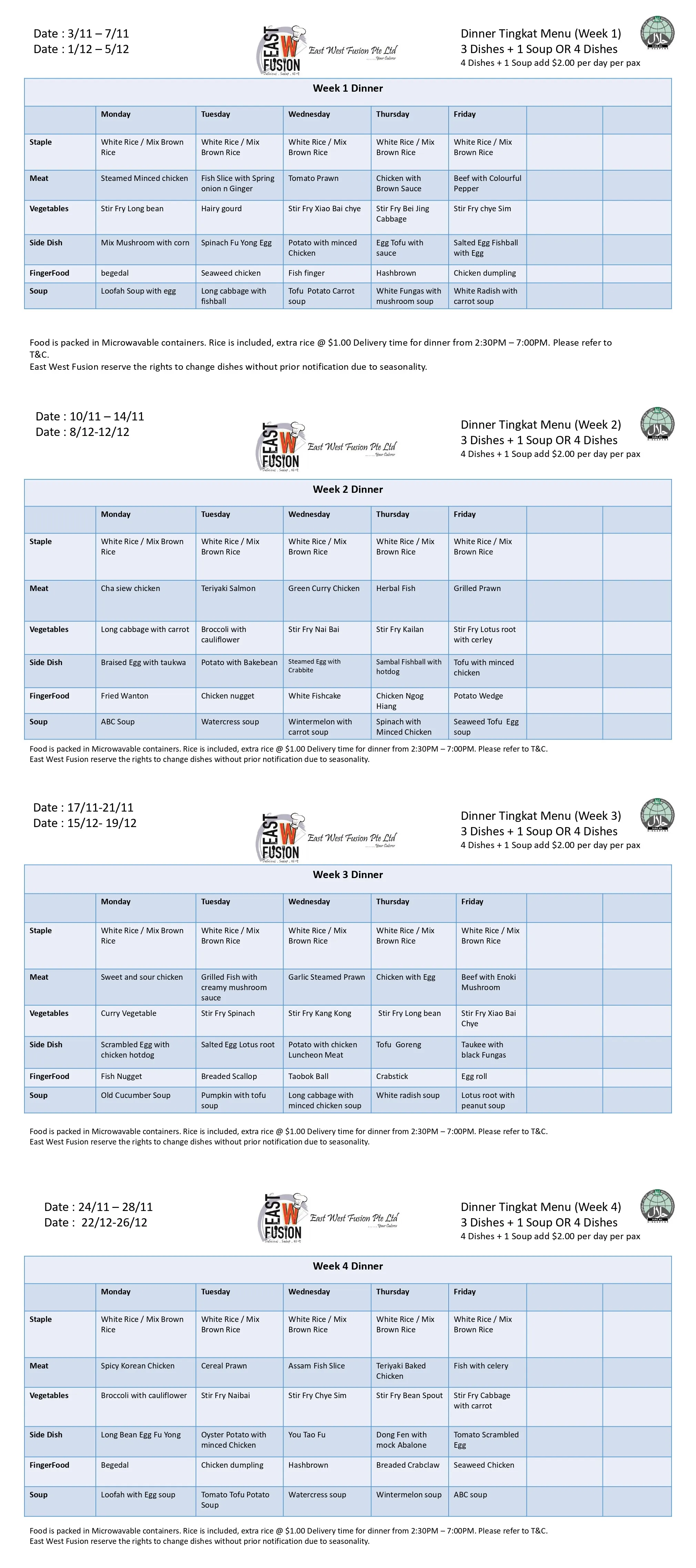 Delivery: Tingkat Services is only served from Monday to Friday. No delivery on Public Holidays, Saturdays/Sundays. No delivery charge.