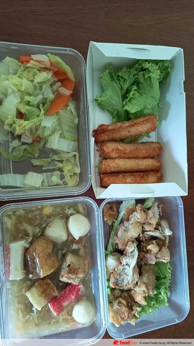 Food was affordable, portion was okay. First time ordering from this caterer. Stir fry kang Kong was sour. Cereal chicken was tough and old people was complaining how tough it was, something to take note of. Delivery person was very understanding ... More and good.