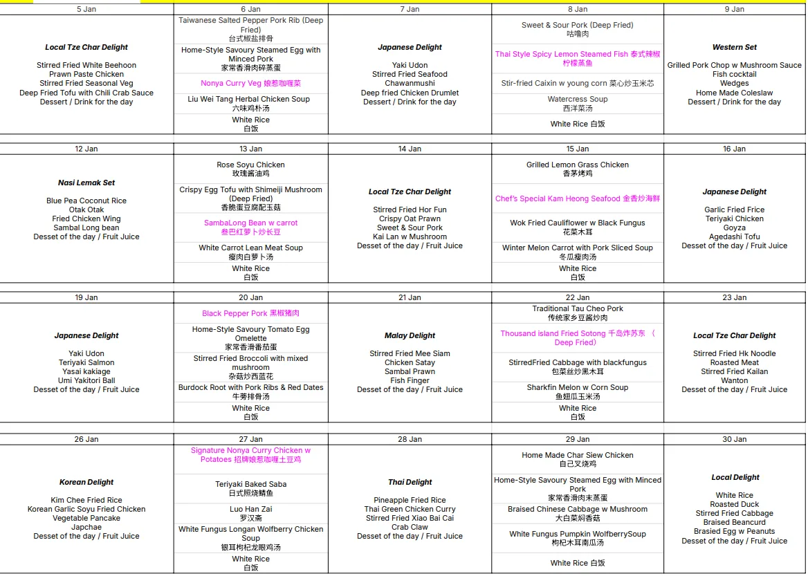 Delivery: Tingkat Services is only served from Monday to Friday. No delivery on Public Holidays, Saturdays/Sundays. No delivery charge.