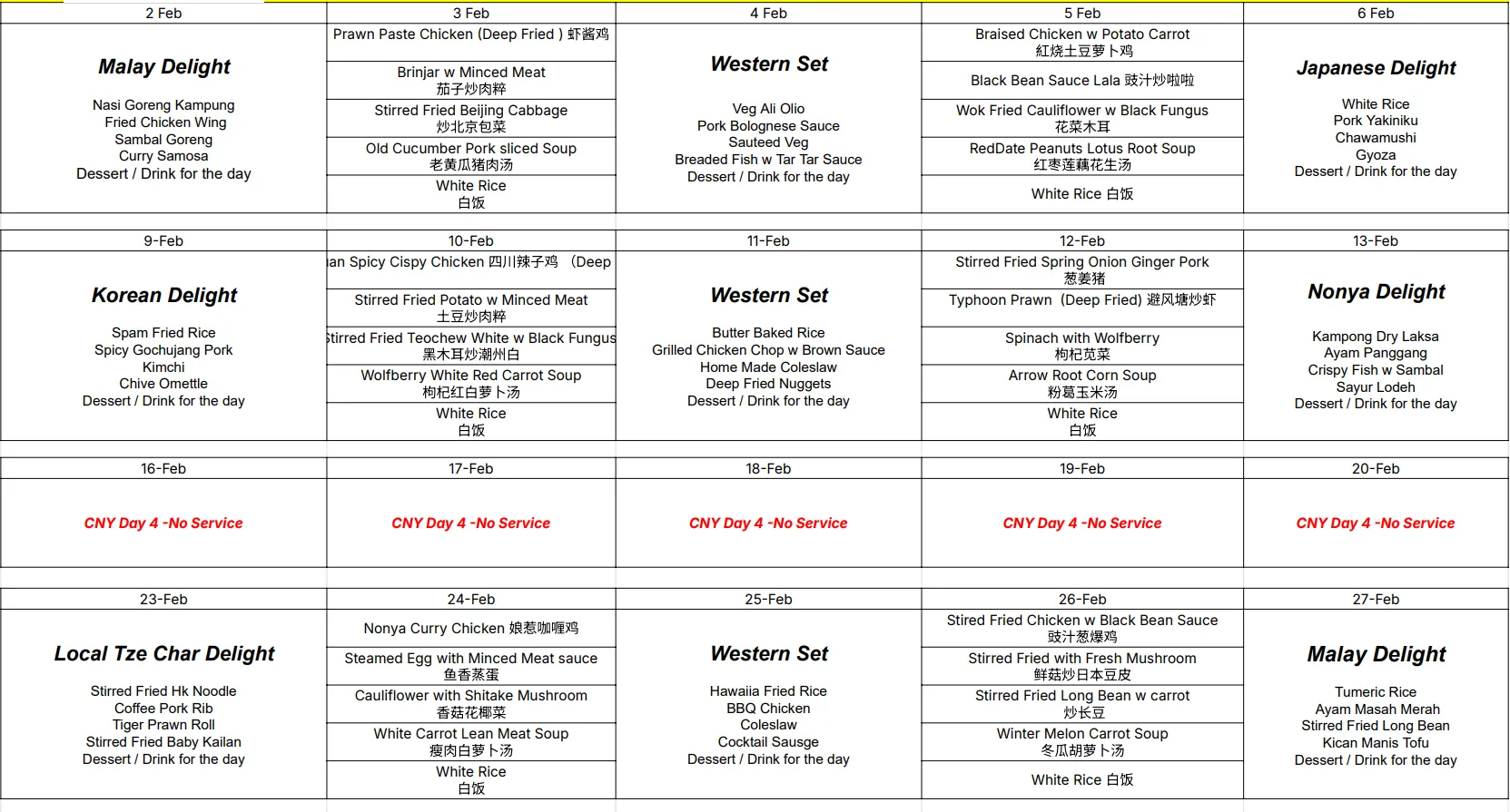 - This menu is NOT available on 16 Feb - 20 Feb 2026