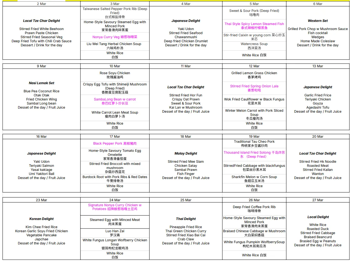 Delivery: Tingkat Services is only served from Monday to Friday. No delivery on Public Holidays, Saturdays/Sundays. No delivery charge.