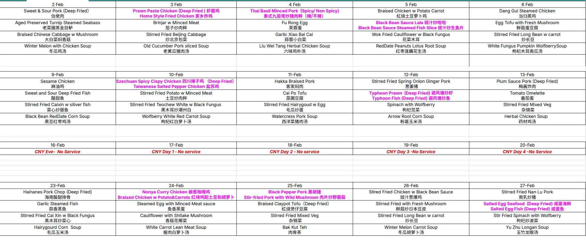 - This menu is NOT available on 16 Feb - 20 Feb 2026