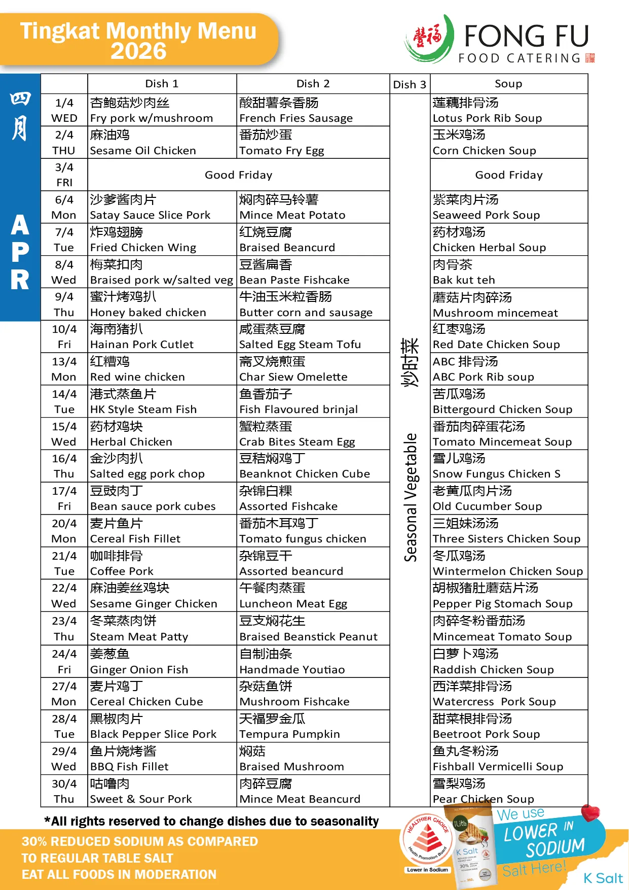 Delivery: Tingkat Services is only served from Monday to Friday. No delivery on Public Holidays, Saturdays/Sundays. No delivery charge.