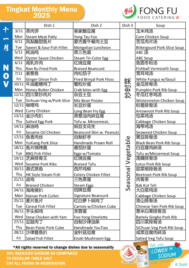 Delivery: Tingkat Services is only served from Monday to Friday. No delivery on Public Holidays, Saturdays/Sundays. No delivery charge.