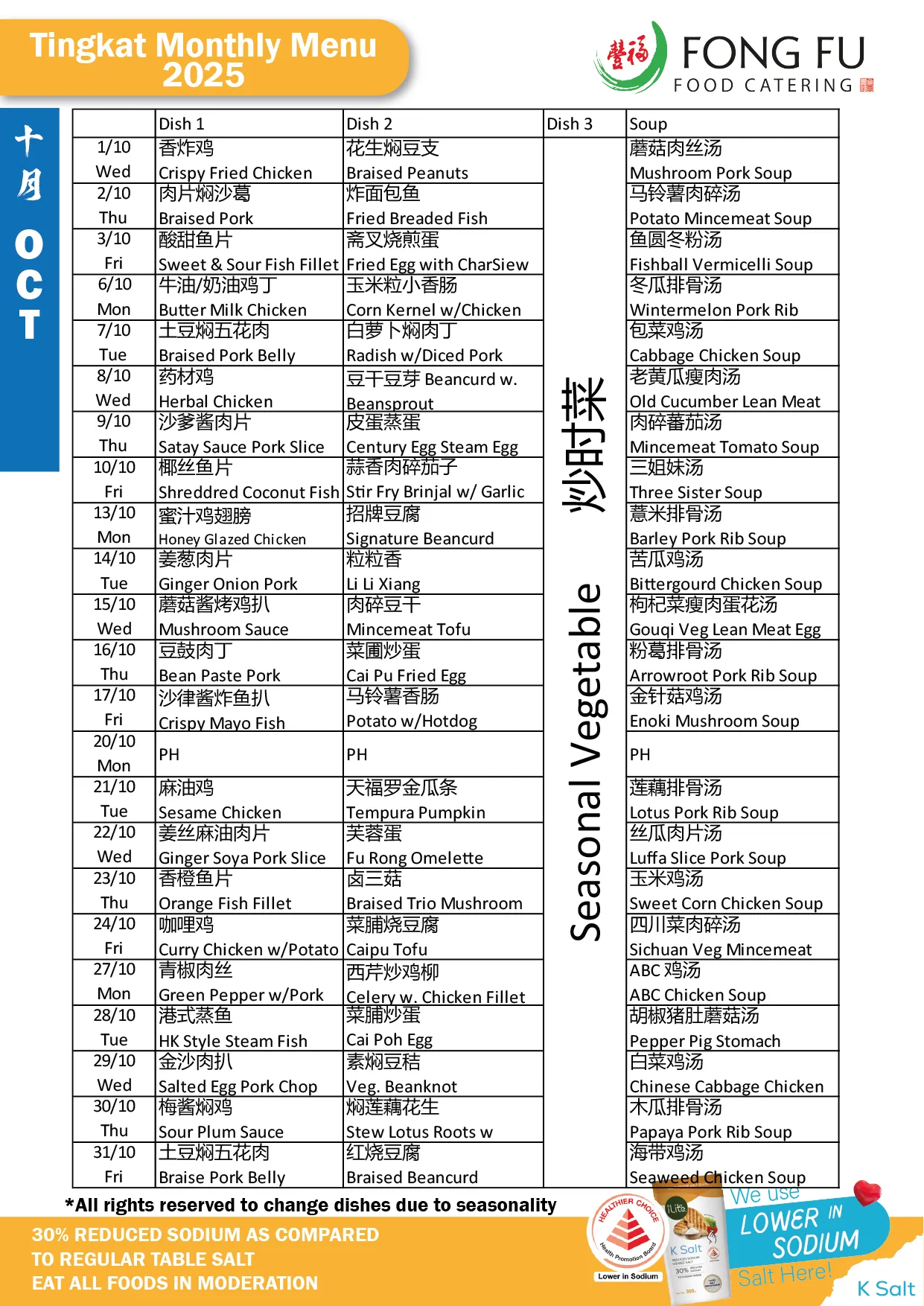 Delivery: Tingkat Services is only served from Monday to Friday. No delivery on Public Holidays, Saturdays/Sundays. No delivery charge.