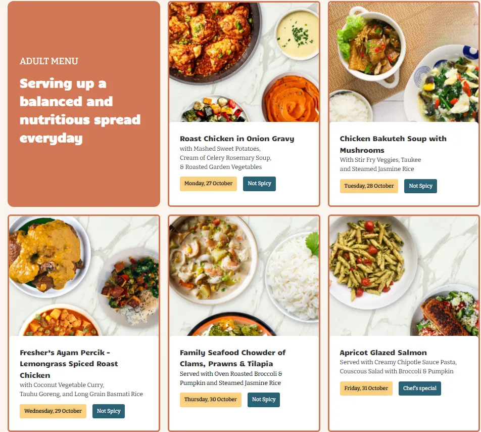 Fresher DinnersFresher Dinners is a brand new, local dinner service that launched in September this year. Being a modern brand that was born and built by a trio of Singaporeans, it is like a refreshing gust of air through the skies of the Tingkat delivery world. Fresher Dinners serves responsibly-prepared, multi-cuisine food to your families. Using the most tested and recognised 'Blast-chilling' technology, Fresher Dinners bring you safe and delicious food without compromising on the taste - no MSG, no preservatives, no additives or colouring. Try us to experience a new kind of mealtime like no other Tingkat.