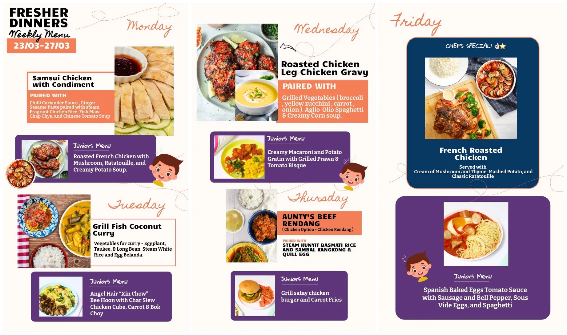 Notes: Kindly order before Thursday 10am to receive your dinners on Sunday the same week.