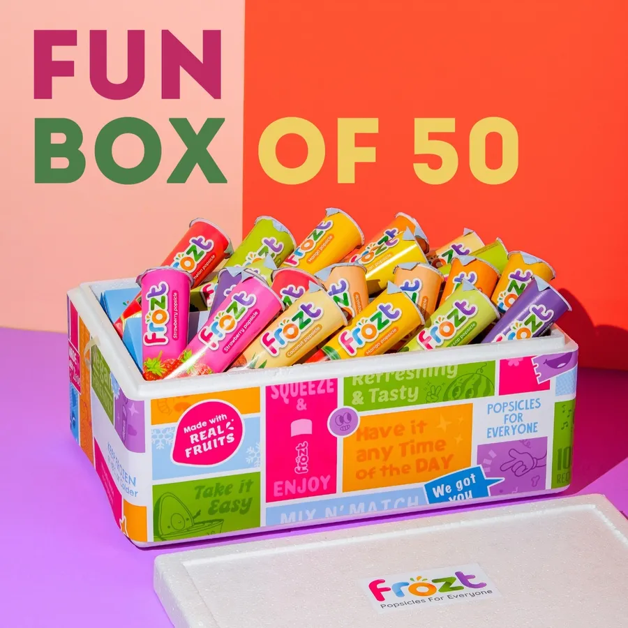 This box comes packed with 50 popsicles, made from quality real fruits.
