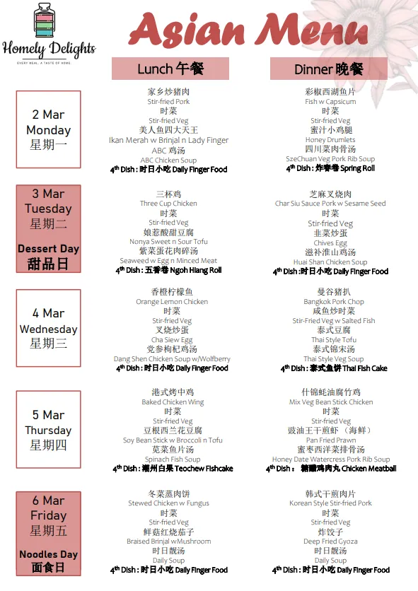 Delivery: Tingkat Services is only served from Monday to Friday, excluding Public Holidays and Weekends. No delivery charge.