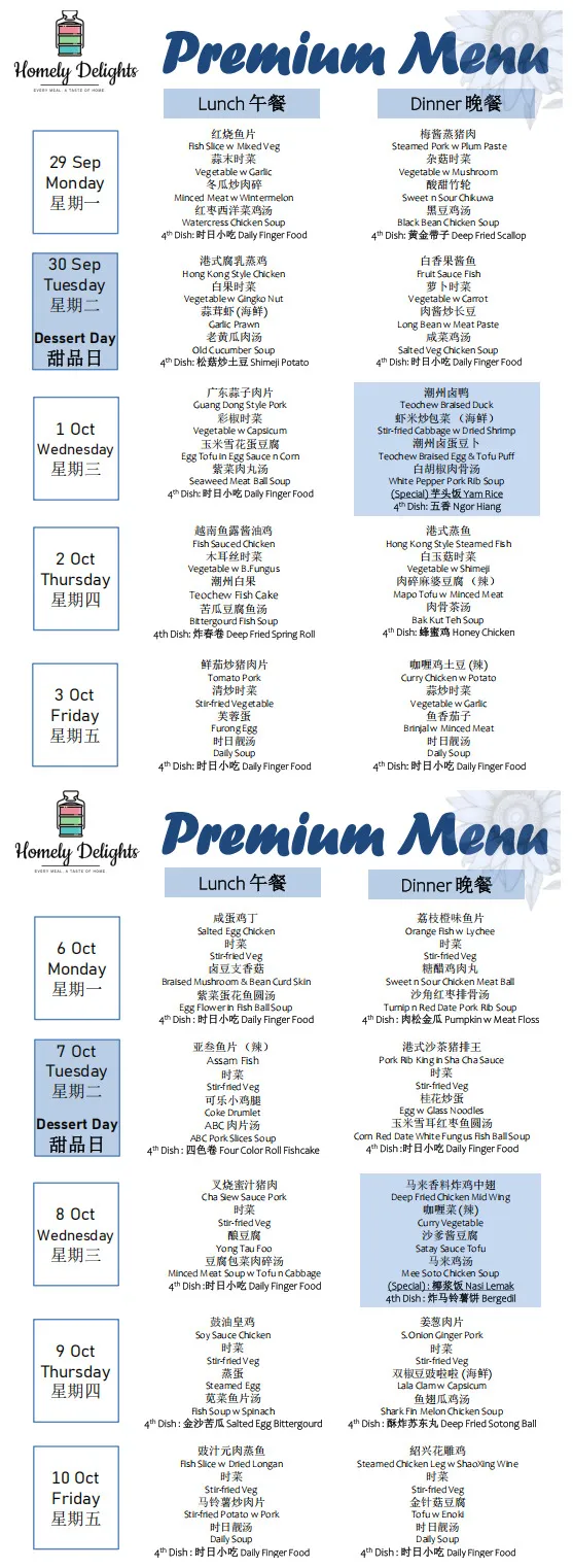Notes: A $120 deposit is needed if required for tingkat containers, refundable within 14 days after the end of the package. Kindly leave them outside your door for us to collect it once you're done!