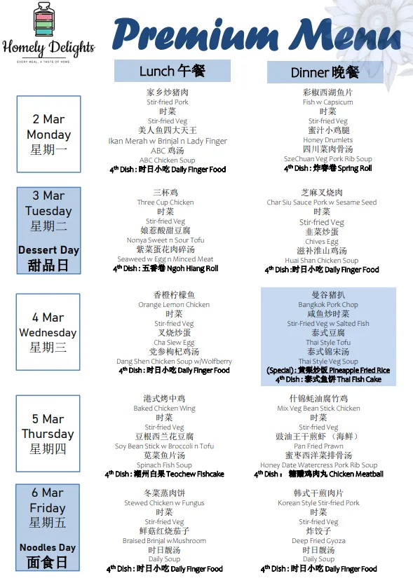 Delivery: Tingkat Services is only served from Monday to Friday, excluding Public Holidays and Weekends. No delivery charge.