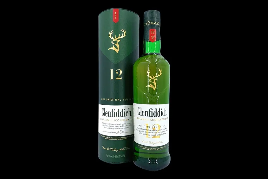 Glenfiddich 12 Year Old offers a fresh, fruity nose with notes of pear, apple, and honey, followed by a palate of sweet, fruity flavors with hints of butterscotch, cream, and malt, culminating in a long, smooth, and mellow finish with subtle oak and spice notes. The whisky's characteristic flavor profile comes from its maturation in American and Spanish oak casks, which are tended by experienced coopers