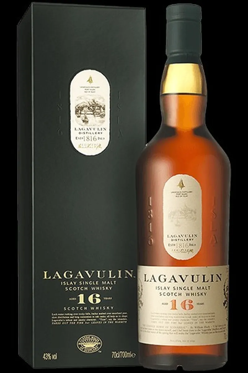 Lagavulin 16's tasting profile is characterized by a balance of sweet, peaty, and smoky notes, with aromas of peat, dried fruit, sea salt, and smoke, and flavors of sweet fruit, smoke, salt, and oak. The finish is long, peaty, and salty, with an overall impression of a warm, intense, and complex single malt Scotch that's well-suited for sipping.
