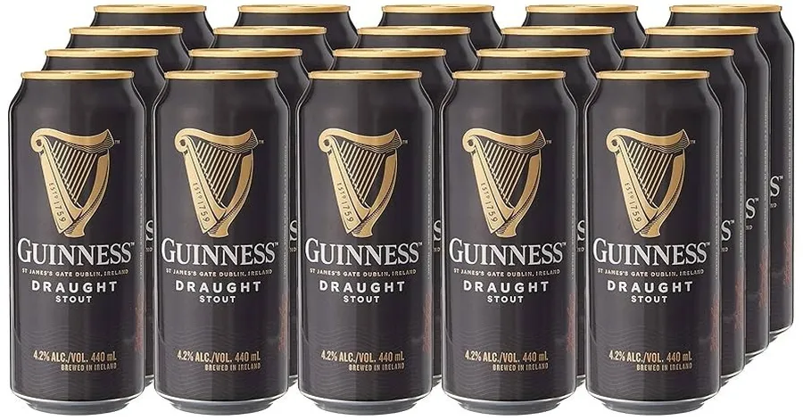 Guinness Draught from a can offers a balance of bitter and sweet flavors, with prominent notes of coffee, chocolate, and roasted barley, all wrapped in a characteristically smooth, velvety, and creamy texture created by a nitrogen-filled widget. The aroma also carries sweet and malty notes, while the finish features the characteristic roasted barley flavor.