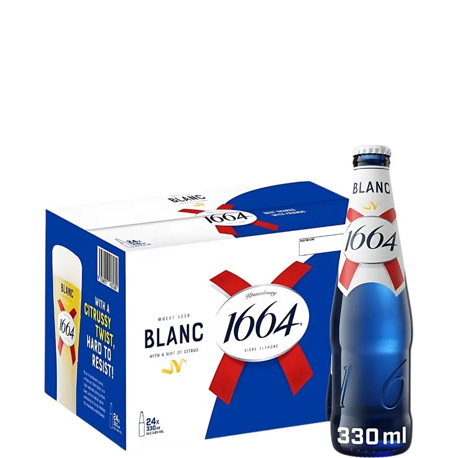 Kronenbourg Blanc offers a sweet and fruity taste profile with notes of citrus (orange, lemon), exotic fruits (apricot, peach, melon, mango), and a hint of coriander spice. It has a light wheat body and a smooth, creamy, and slightly zesty mouthfeel, finishing with a clean, refreshing citrus aftertaste and a subtle bitterness. The beer has a pale, hazy golden appearance due to its high wheat content and a creamy white foamy head.
