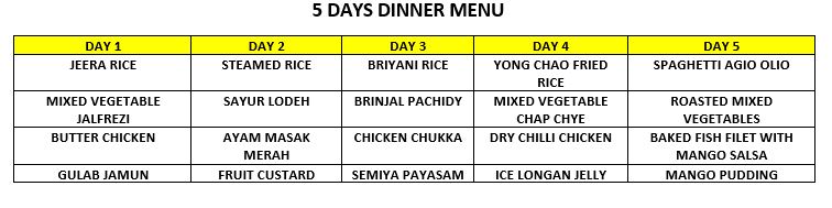 Notes: NO skipping of meals is allowed for the whole cycle.