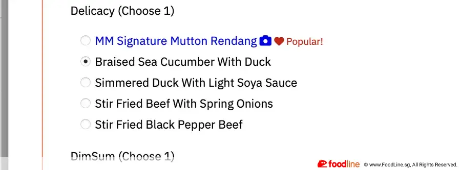We ordered 10 dishes mini catering and they informed us 1 of the dishes is out of stock 1 day before, which is "Braised Sea Cucumber With Duck". That is very disappointing because we wanted to have more meat option, duck, which all of guests don't ... More mind eating. Initially they offered rendang chicken as substitute, but i rejected and requested for other duck dish. they insisted they don't have it too. then i firmly requested substitute has to be either duck, beef or mutton, which are available on the menu when order was placed. Luckily they substituted with rendang mutton in the end. Also, steamed prawn gyoza was on the menu, but they sent us fried one. i didn't realise the mismatch until event started. So overall experience just ok only.
