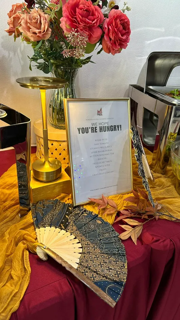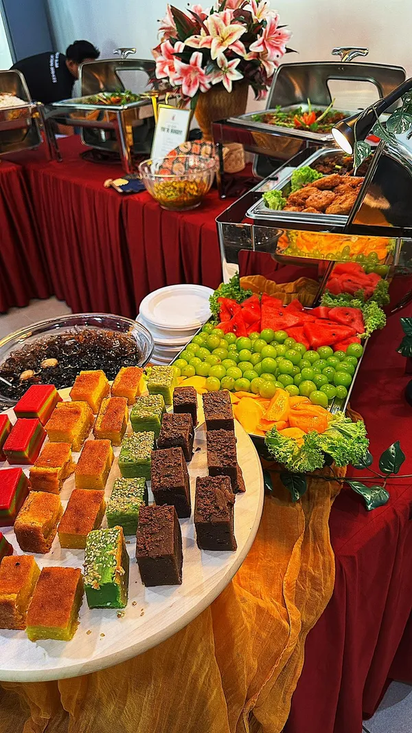 The caterer was very efficient in setting up the buffet table and was meticulous in the deco presentation. The food was mostly tasty, particularly the teh tarik drink. Highly recommended!