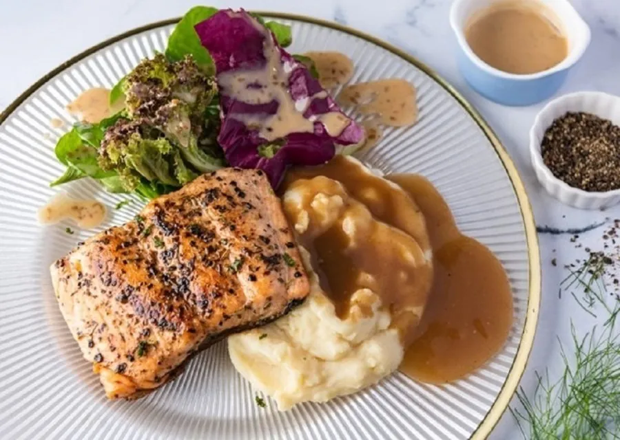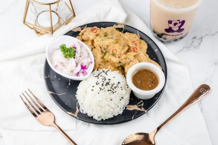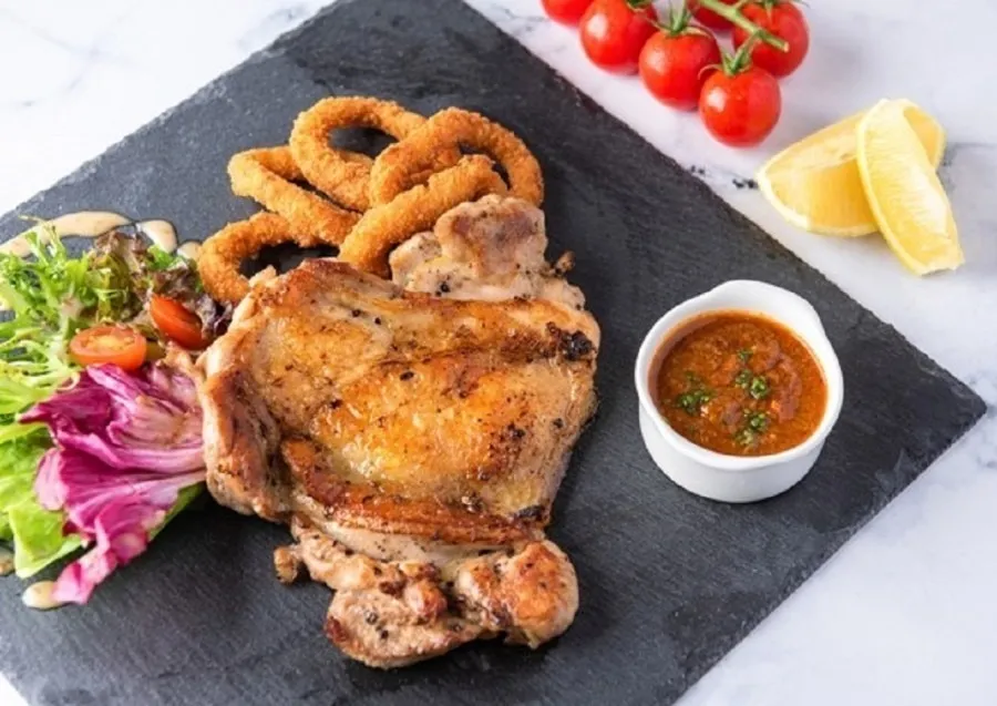 The fish and chips offered here may appear modest, yet its taste is anything but. Breaded to a delicious golden-brown and taste so authentic local. We offer you to choose two sides along with each set.