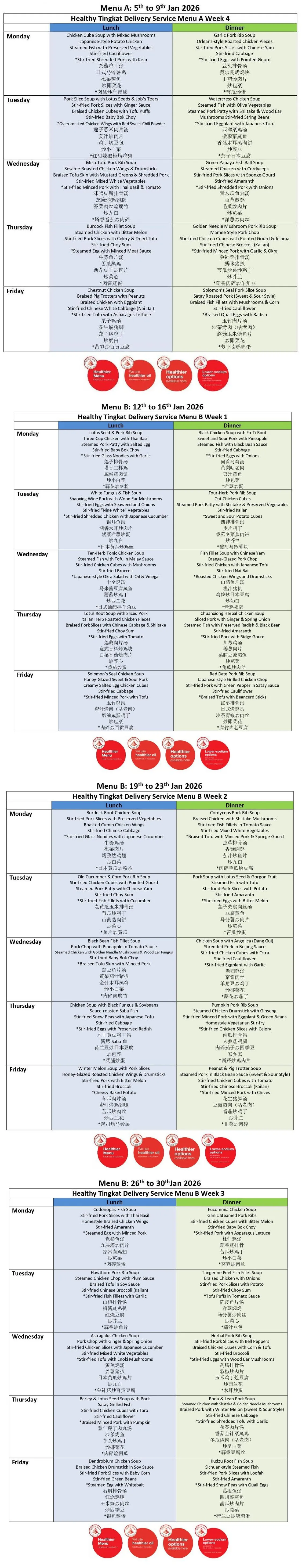 Delivery: Tingkat Services is only served from Monday to Friday. No delivery on Public Holidays, Saturdays/Sundays. No delivery charge.