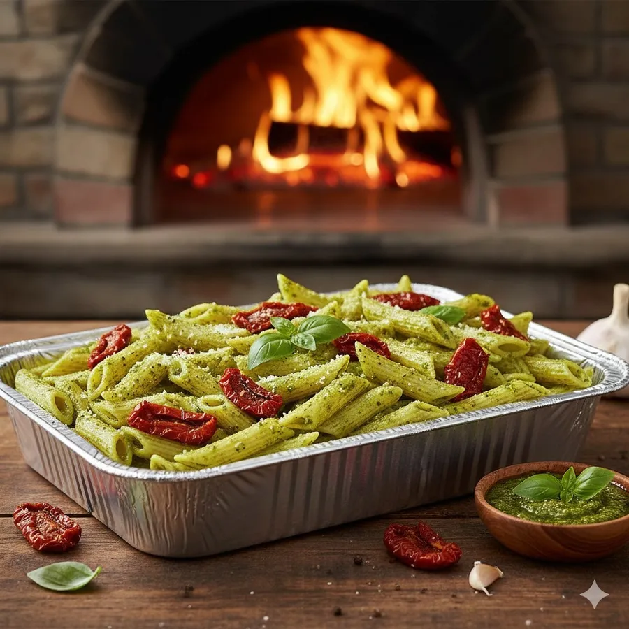 Penne with garlic, Sundried tomato and basil pesto