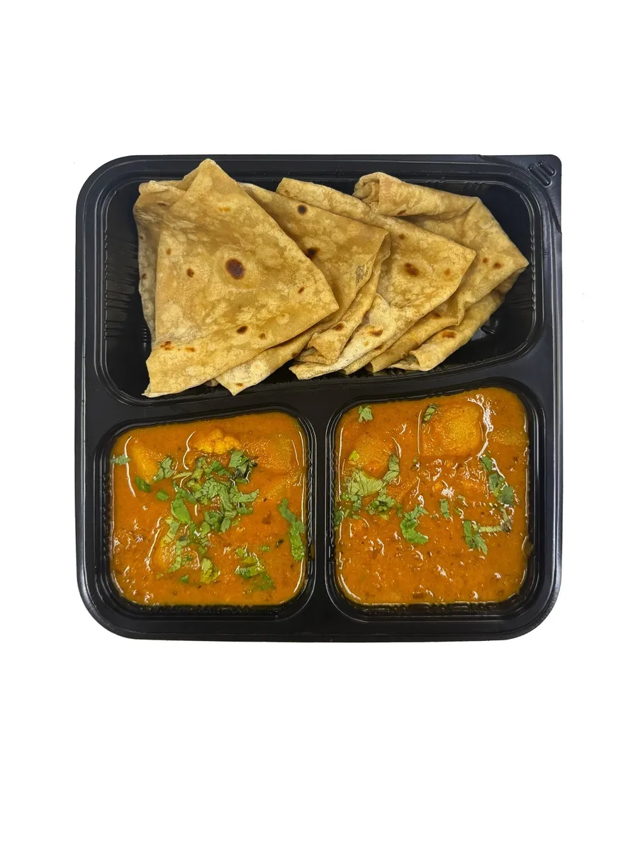 Chicken Aloo Gobi is a hearty, home-style dish that combines tender chicken with potatoes (aloo) and cauliflower (gobi) in a spiced curry.