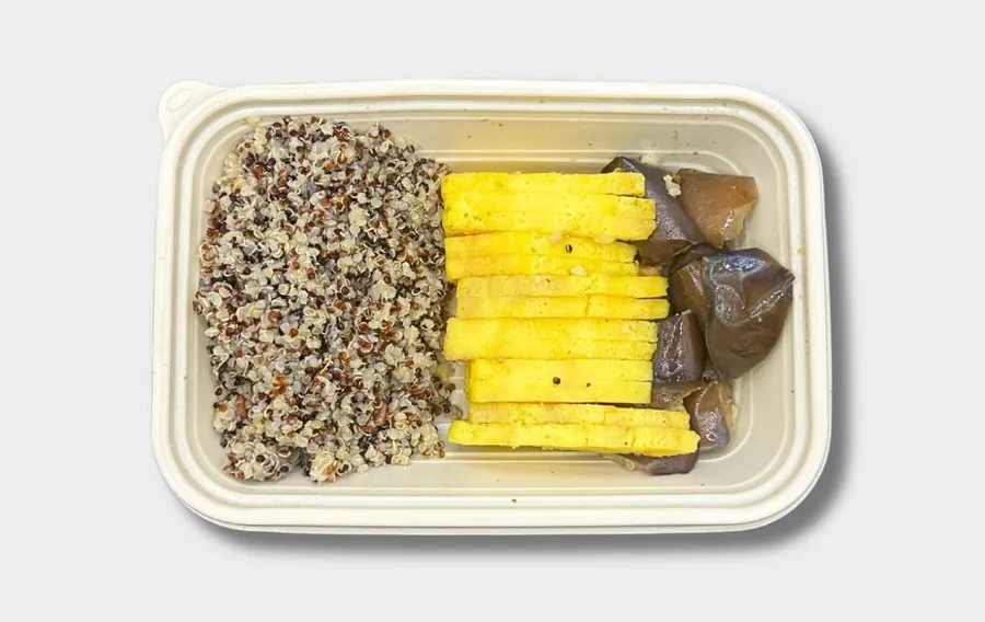 Fluffy tamago meets grilled eggplant and quinoa for a gentle yet protein-rich fuel-up.