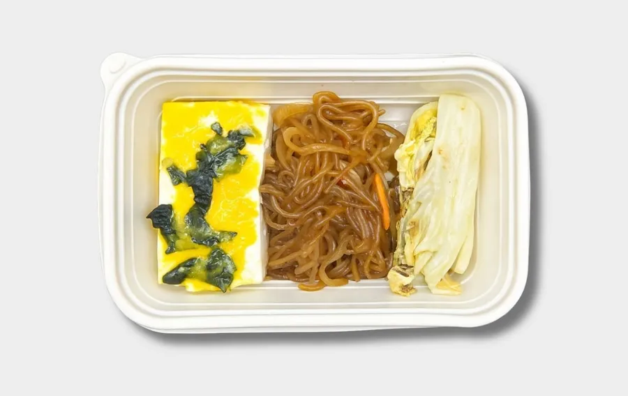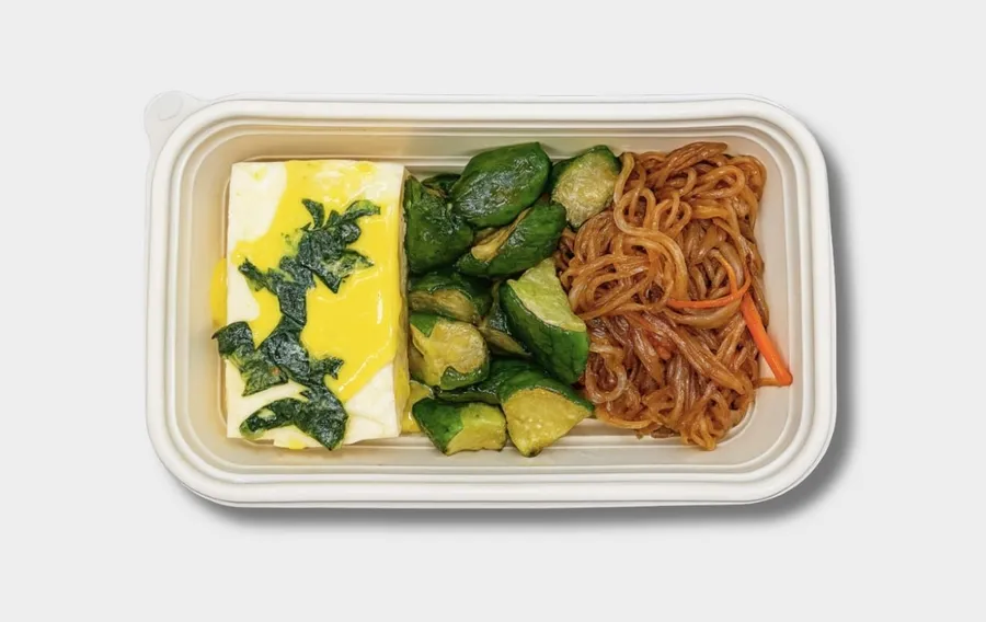 Light japchae noodles, tofu, and cucumber deliver clean flavor and lasting energy.