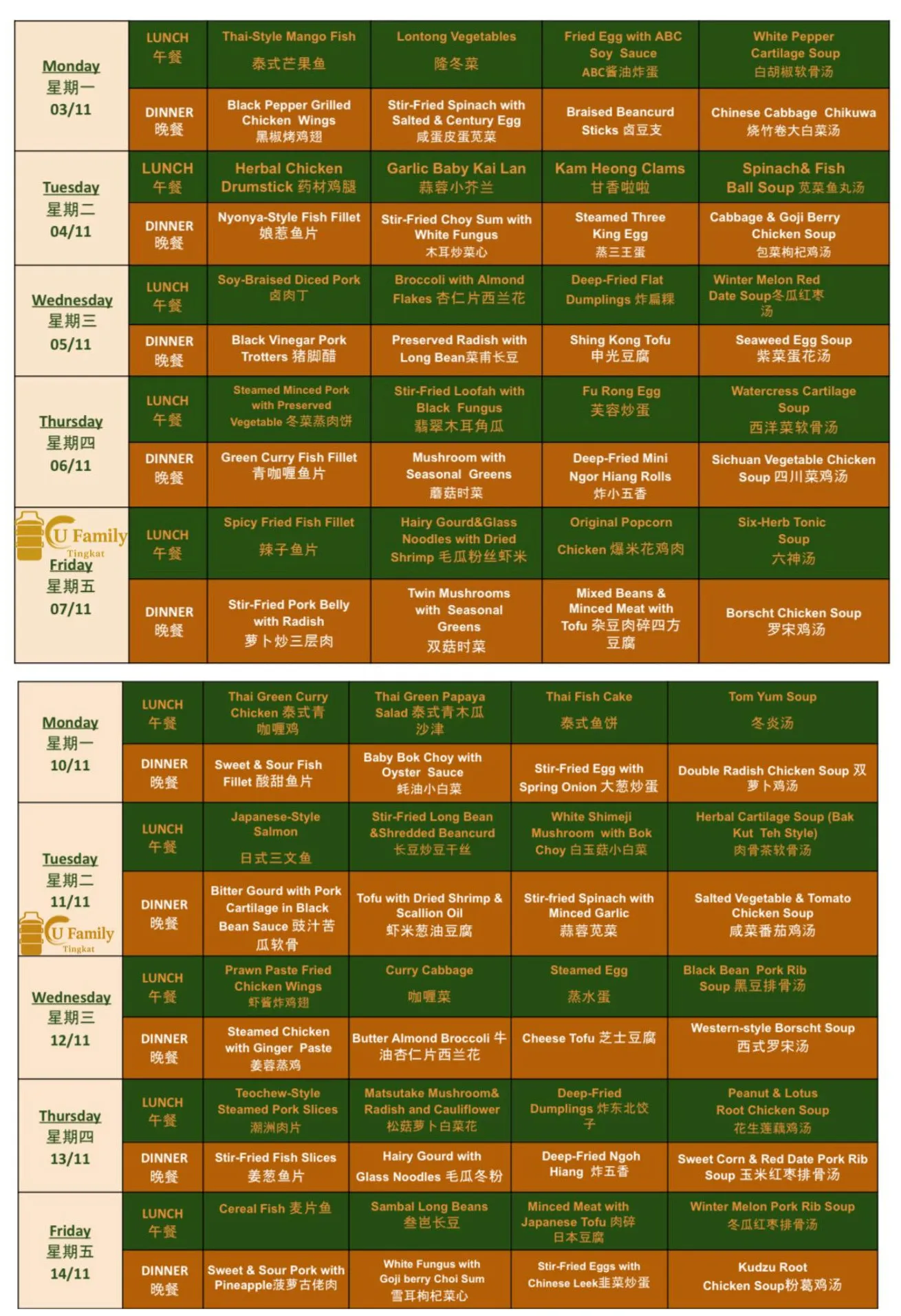 Submit your order for U FAMILY TINGKAT - Double Meal 10 Days Tingkat (3 Dishes 1 Soup )