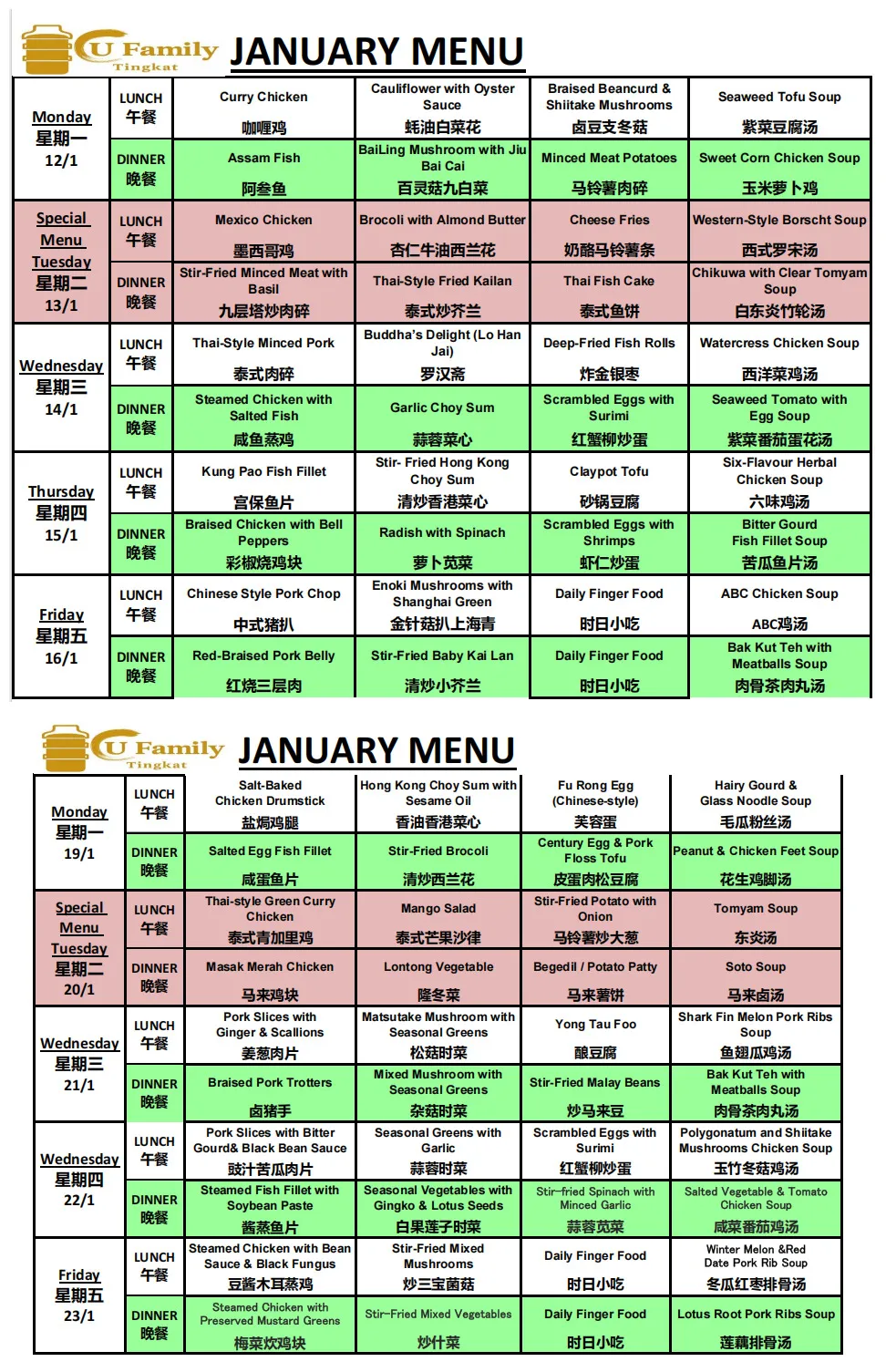 Delivery: Tingkat Services is only served from Monday to Friday. No delivery on Public Holidays, Saturdays/Sundays. No delivery charge.