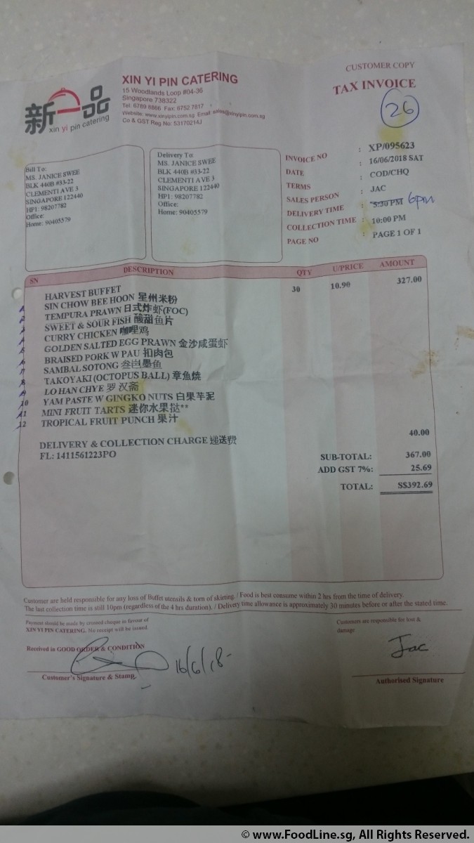 Xin Yi Pin Catering Pte Ltd review
