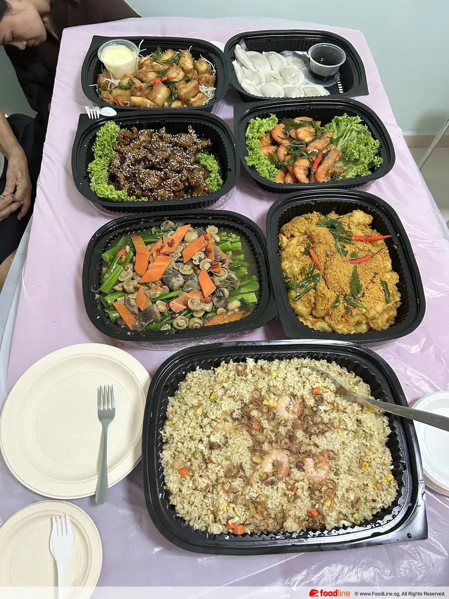 The delivery was slightly delayed maybe due to too many deliveries during the CNY, the delivery guy was friendly. The food portion was good enough. The taste of the foods not bad, but some of the dishes, like the kai lan, the cereal fish was cut ... More into quite big chunks. The yusheng’s smoke salmon cut into big pcs too. But overall me and my relatives was quite satisfied with the food and service.