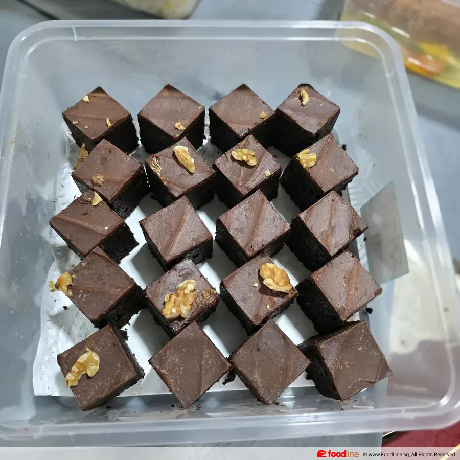Oh, the walnut brownie is moist. Just that walnut is not on every piece of brownie. Show less