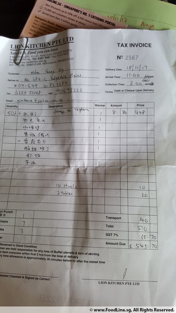 Buffet Menu S$13 Per Pax
