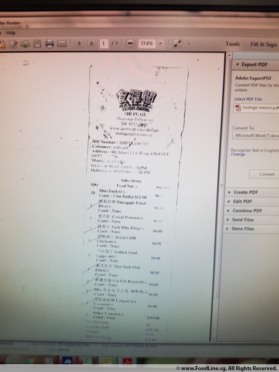 Buffet Menu S$13 Per Pax
